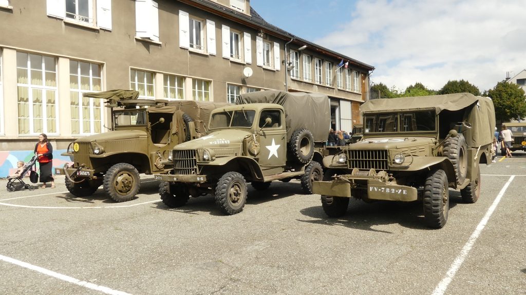 Le G.R.L.D., ce sont des passionnés qui reconstituent les costumes d’époque, mais pas que ! Il y avait également des véhicules, des Jeeps et les Dodge et GMC… !