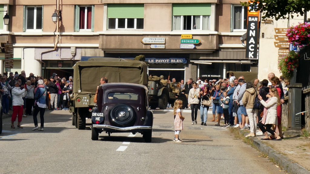 J’ai pris une vidéo de l’arrivée du G.R.L.D. et quelques véhicules civils, comme la fameuse Citroën Traction, ainsi que la police en remontant la rue des Alpes.